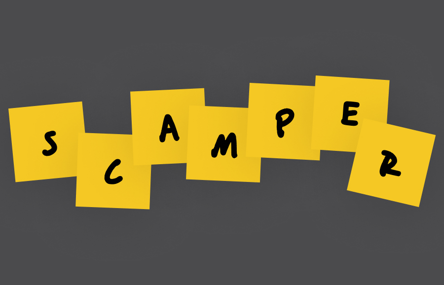 Scamper é uma técnica de ideação que funciona para abrir novos horizontes, que antes, pelos meios tradicionais, não seriam cogitados. Essa é uma técnica interessante de pensamento lateral, teoria que diz que, quando estamos enviesados num pensamento, nossa capacidade fica restrita para pensar em novas possibilidades.